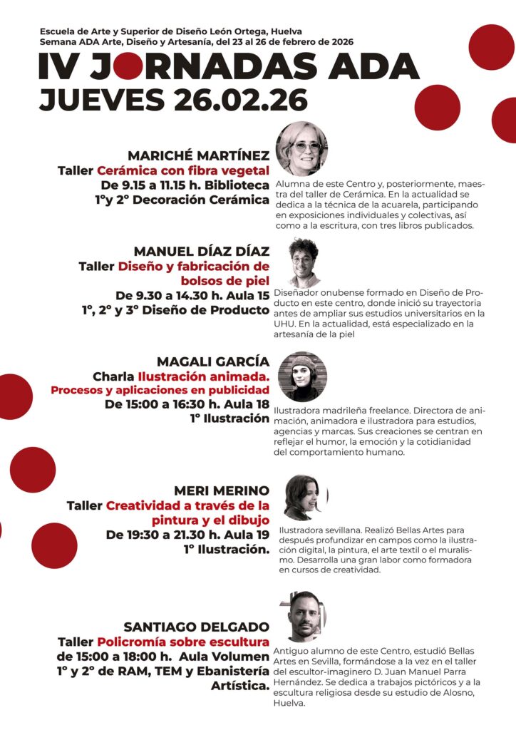 Durante cuatro días, del 23 al 26 de febrero, la Escuela de Arte y Superior de Diseño León Ortega acoge charlas y talleres impartidos por profesionales de distintos sectores creativos.